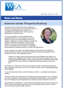 Governor Unveils ‘Prosperity Roadmap’ – WEA News and Notes – Dec. 3, 2025